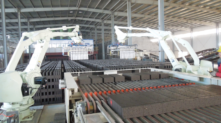 The grouping system is the key equipment of the brick production line,it used between the cutting and setting process. The system has transport, turn over, marshalling, sewing and other functions, and by configuring different accessory equipment, this system can be matched with the robot and automatic setting machine also.